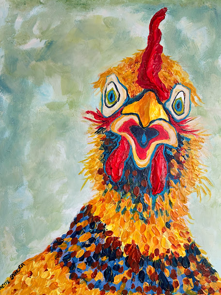 Freya is 12″ w by 16 “h , painted with acrylic textured gel on cradled wood.