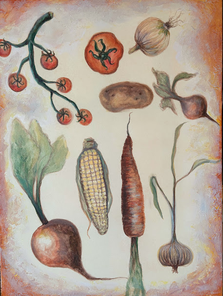 Sprouting Creativity , 30″ h x 40″ w , Conte’ sketch painted in Acrylic on gallery wrap canvas with fibre Texture. Free delivery in Edmonton.