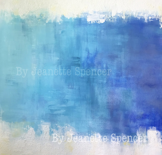 30″ by 30″ by 2″ acrylic and gel texture , varied colors of blue ,